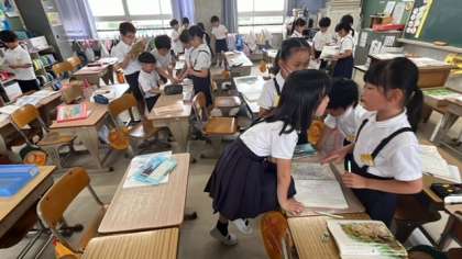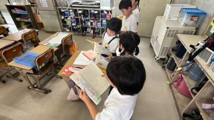 「スイミー」の音読発表会に向けて、役割分担を考えています。子どもたちが中心の活動ですので、大変いきいきとしていました。本番が楽しみです。