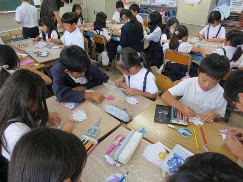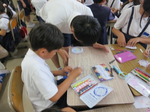 風コマを一緒に作って、回してみよう 2年生と6年生