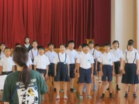 1学期からの練習、2学期のクラスでの練習を振り返り、曲のテンポを確認し、歌のイメージを創るために歩きながら歌った後は、全体で音を合わせました。