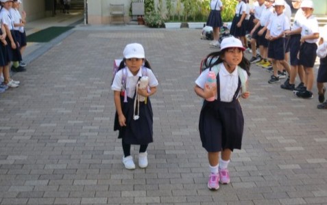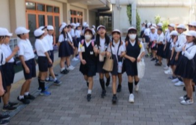 5年生の元気な「さよなら」のあいさつが、秋晴れの空に響いてました。
