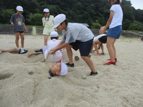 ビーチで砂の中に埋もれたり、波打ち際で遊んだり、海面に入ったりと思い思いに楽しんでいました。