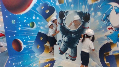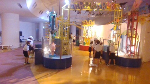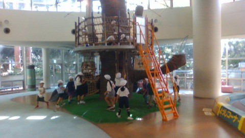 2年生は、その施設の広い館内を4人1組の班ごとになって団体行動をしながら、各空間の遊具での活動に、思う存分に取り組んできました。