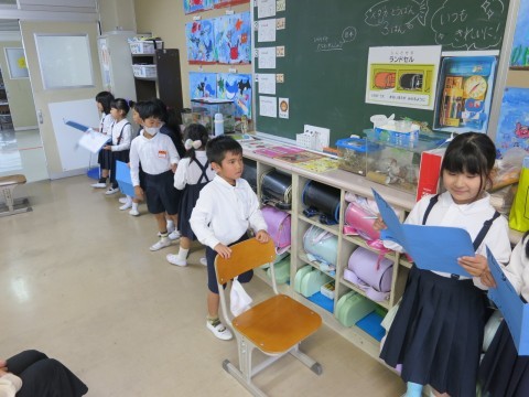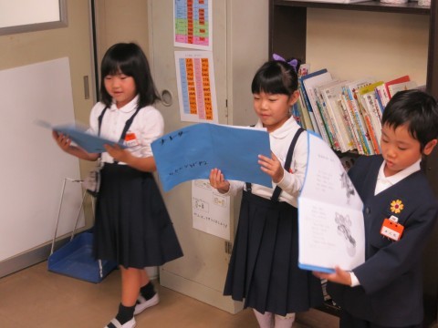 1年生は、「おおきなかぶ」の音読劇に取り組んでいます。
