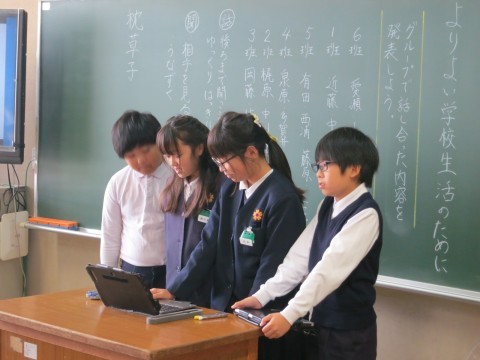 本日の参観では、各学年とも音読劇、グループワーク、グループでのプレゼンテーションなど、2学期にグループで取り組んできた学習を観ていただく授業を中心に行いました。