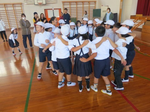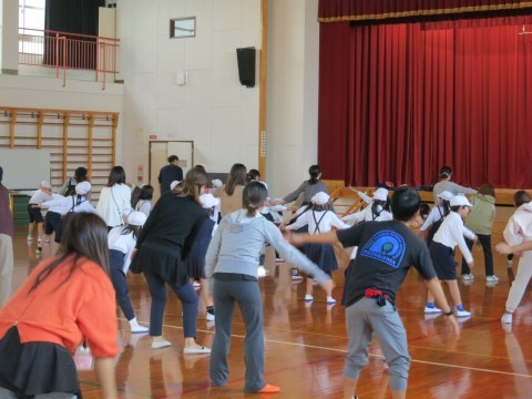 はじめに、ウォーミングアップとして親子一緒に堺っ子体操で体を動かしました。