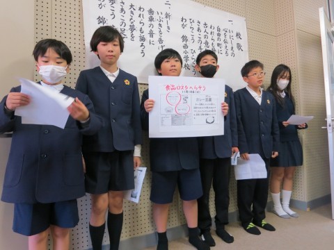 11月12日(水)の全校朝会で、一人一人のできる範囲で無理をせずの給食で食品ロスを削減しようと呼びかけました。