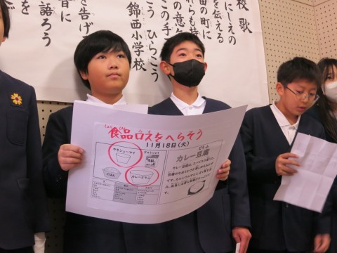 また、11月19日(水)の全校朝会では、11月18日(火)の給食での食品ロス削減状況を報告しました。