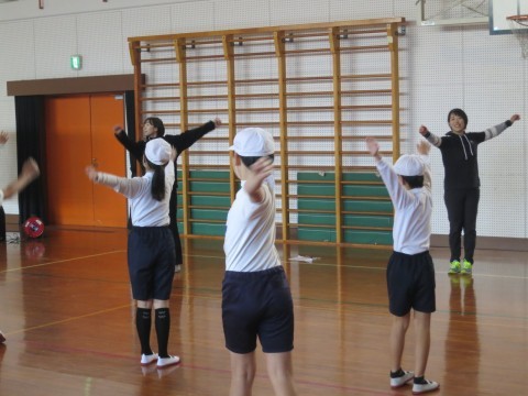 まず、ウォーミングアップは、松村先生とともに堺っ子体操で体を動かしました。