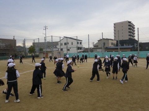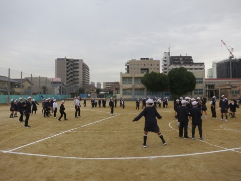 12月17日(水)のお昼休みに、4年生と6年生がドッジボールで交流をしました。