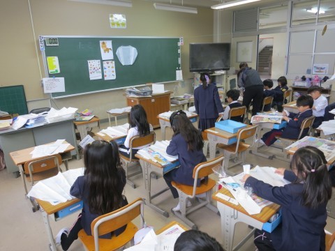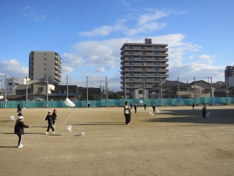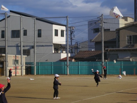 さあ、いよいよ校庭で作った凧を揚げる時です。