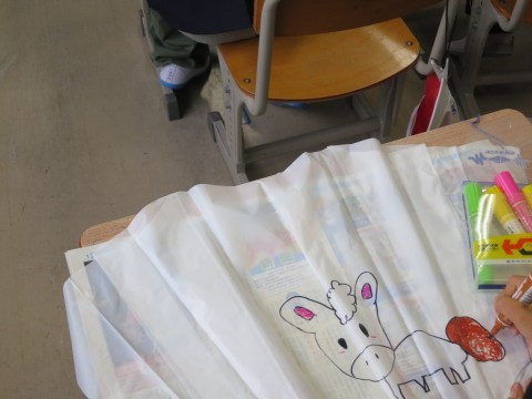 凧には、干支の午の絵や鏡餅の絵など、思い思いに新年の願いを込めて絵を描きました。