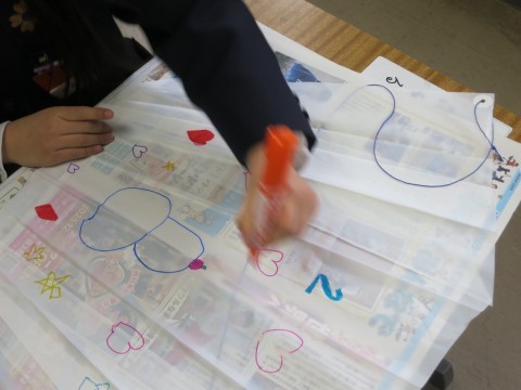 新春の青空に悠々と泳ぐ凧 1年生 図工