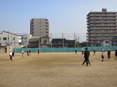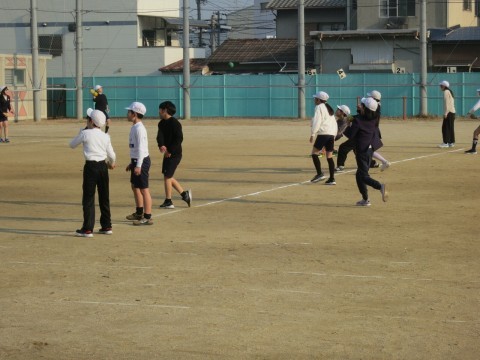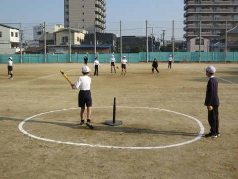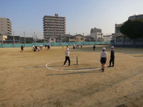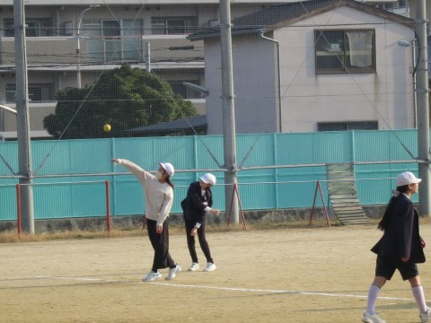 この日は、気温も1月のこの季節には珍しい3月下旬並みの暖かさで、子どもたちは、澄み渡る青空のもと、ソフトボールを投げたり、打ったりと実技に取り組んでいました。