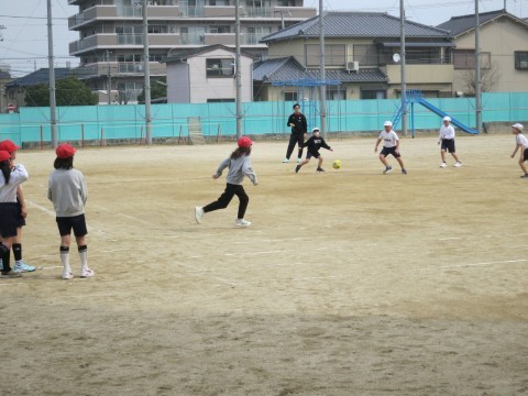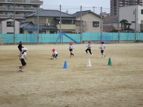 また、ゲームでは1、2年生で習った蹴る、捕る、投げるなどの基本的動作を確認してゲームを行っています。