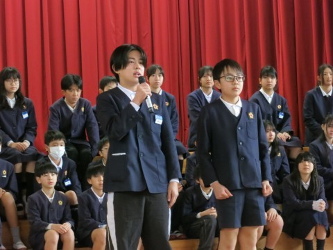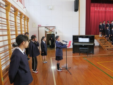 1年生から5年生は、感謝の気持ちを込めたメッセージと歌をプレゼントし、6年生からお礼の品と歌、そして代表の児童2名からお礼の言葉で、感謝の気持ちに応えました。