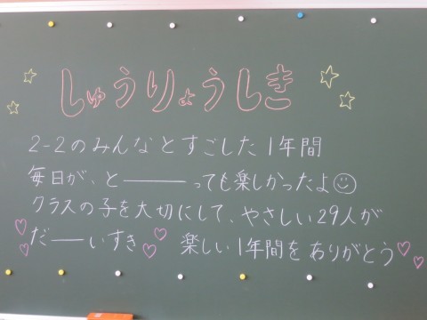 全体での修了式の後は、各クラスでの1年間の締めくくりを、1年間一緒に過ごした仲間とともに行いました。