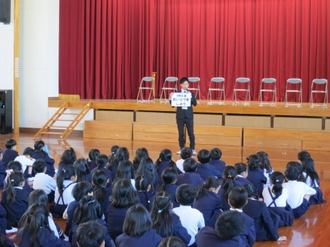 また、生徒指導の松岡先生からは、年間の生活目標である「あいさつをしよう」についてのお話があり、人より先にあいさつができるようなるための心構えについてもアドバイスがありました。