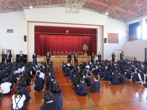 始業式では、校長先生から、新しい環境で楽しく学校生活を過ごせるよう「自分に自信を持つこと」「友達を大切にすること」「学校、町を好きになること」の3つを心がけてほしいとのお話がありました。