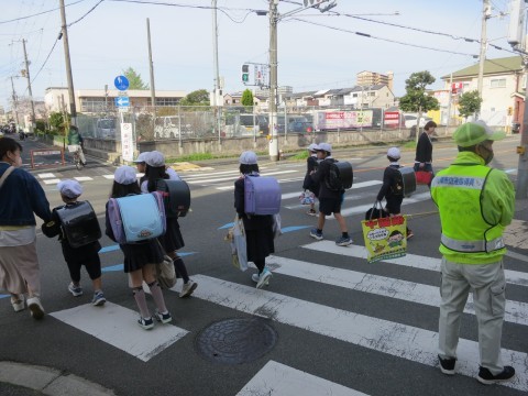 また、4月6日(月)から4月15日(水)の10日間は、「令和8年春の全国交通安全運動」期間でもあることから、4月8日(水)の始業式で校長先生から、交通ルールを守り、常に自分自身の安全を確保してほしいとの話があったほか、全国交通安全運動の重点取組である「通学路・生活道路におけるこどもをはじめとする歩行者の安全確保」ができるよう、今回の登校指導では「右側通行などのルール、基本の徹底をこどもたちに呼びかけました。