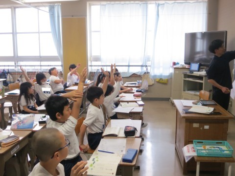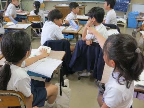 「春のうた」の詩を音読して、かえるの感じている「春」、そして詩の中に出てくる「くも」は、空の「くも」なのか、虫の「くも」のどちらなのか、かえるの気持ちを想像しながら、理由とともに考えました。