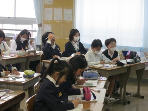 授業では、教科担当の教員のほかにも、内容に応じて担任の教員がこどもたちの学習をサポートし、授業を進めております。