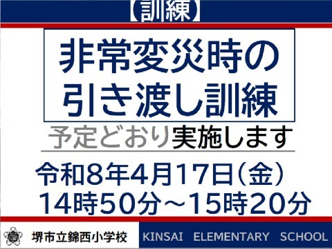・訓練のため、お迎えがない場合は、15時30分に下校します。