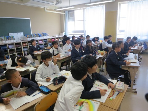 最後に書いた文章をクラスで読み合い、何の食べ物について書いたのか当て合いました。