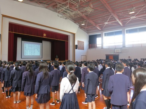 4月22日(水)は、令和8年度に入って初めて、また1年生も入っての全校朝会でした。
