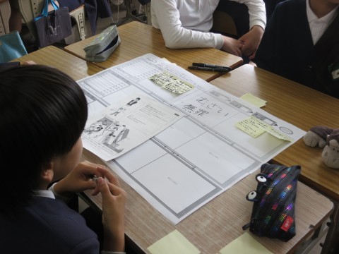 2組は、社会の授業で裁判について考え、グループで模擬裁判の演習をしました。