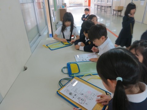 1年生は、2年生の案内により「小学校のひみつ」をたくさん見つけたり、スタンプラリーで先生にスタンプを押してもらったりと楽しく学校を知ることができました。
