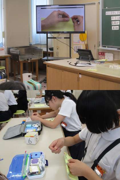 5月9日(火)5年生「レッツ!ソーイング」 公開日 2023/05/09 更新日 2023/05/09 5年生 家庭科では先週から「手縫い」の学習を始めています。 今日は、なみ縫いの復習をしたのち、「返し縫い」や」「かがり縫い」を練習しました。 玉結び、玉どめも徐々に慣れてきました。
