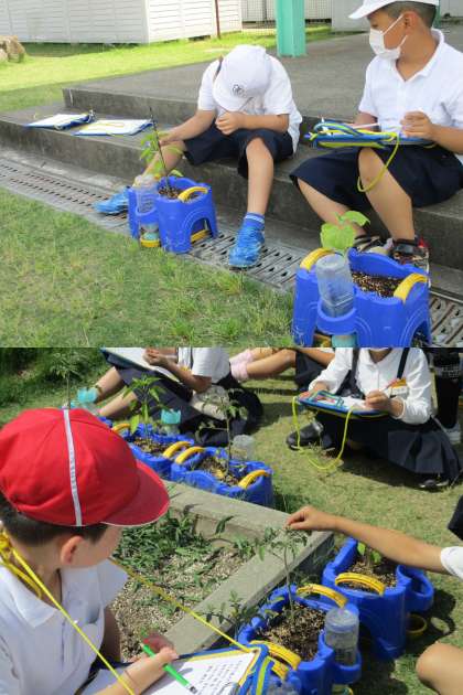 5月26日(金)2年生「かんさつ名人になろう」 公開日 2023/05/26 更新日 2023/05/26 2年生 国語の授業の様子です。ここでは、飼っている生き物や、育てている植物を丁寧に観察して記録する学習を行います。 今日は、学習園に行き、自分が育てている野菜を丁寧に観察し、ワークに観察メモを書きました。
