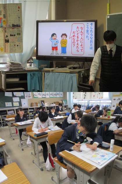12月12日(火)3年生「公平なたいどで」 公開日 2023/12/12 更新日 2023/12/12 3年生 道徳の授業の様子です。教科書の「なおとからのしつもん」を読み、「なぜ、人によって態度を変えたらだめなの?」の質問にみんなで考えていました。