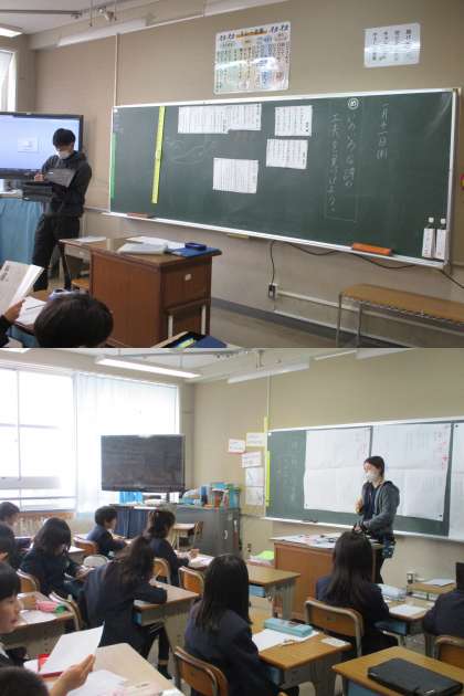 1月11日(木)3年生「詩の工夫を楽しもう」 公開日 2024/01/11 更新日 2024/01/11 3年生 国語は、詩の楽しみ方を見つける授業の様子です。 教科書に載っている6つの詩を読みました。詩の中に何かが隠れていたり声に出して読むと楽しい詩、見て楽しむことができる詩を学習しました。