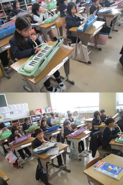 1月12日(金)1年生「鍵盤ハーモニカの練習」