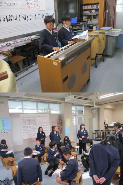 1月12日(金)3年生「音楽劇の練習」 公開日 2024/01/12 更新日 2024/01/12 3年生 2学期の終わり頃から音楽劇に取り組んでいます。 今日の目当ては、「せりふの言葉を覚えて、大きな声ではっきりと話す」です。役になりきり、自然と動きも入れている子も増えてきました。