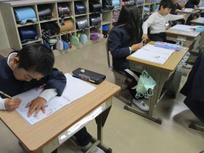 1月15日(月)1年生「新出漢字の学習」 公開日 2024/01/15 更新日 2024/01/15 1年生 3学期に入り、新出漢字の学習にも取り組んでいます。今日は、「白」と「音」の漢字を学習しました。漢字を使った言葉もたくさん発表できました。