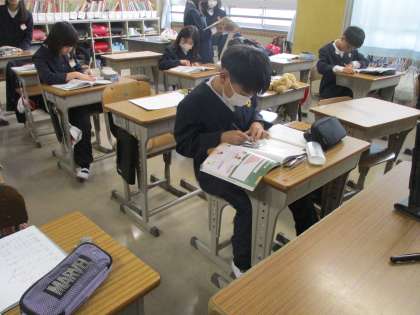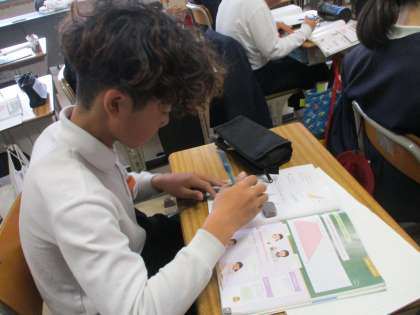 1月15日(月)5年生「三角形の面積」 公開日 2024/01/15 更新日 2024/01/15 5年生 どんな形の三角形でも、底辺と高さが等しければ、面積は等しくなることを学習しました。習ったことを活用して、今日は、方眼紙に面積が9㎠になる三角形を書く問題に取り組みました。公式を思い出し、底辺と高さを考えて作図していました。