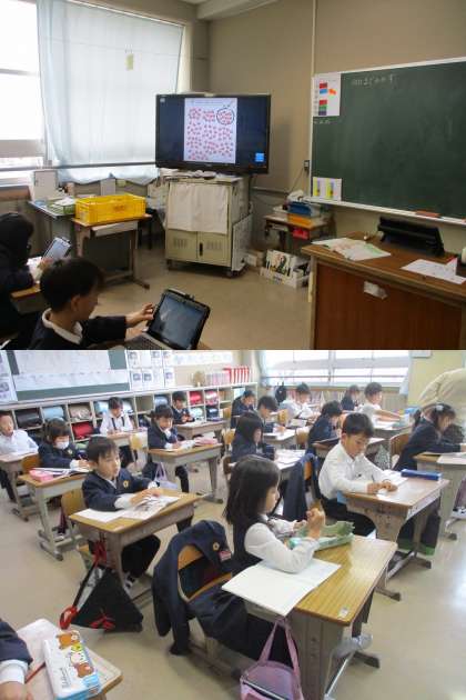 1月16日(火)1年生「100までのかず」 公開日 2024/01/16 更新日 2024/01/16 1年生 算数は、100までの数の学習です。10のまとまりがいくつあるか、まとまりごとに〇で囲んでいき、だるまの数を数えました。きちんと数えられたかな?