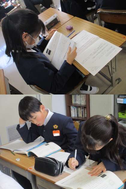 1月25日(木)5年生「想像力のスイッチを入れよう」 公開日 2024/01/25 更新日 2024/01/25 5年生 5年生最後の説明文「想像力のスイッチを入れよう」の学習です。ここでは、事例と筆者の意見の関係に気をつけて読み進めていきます。