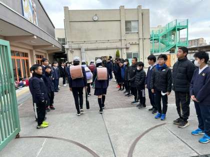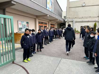 今日は、5年1組と児童会の児童が正門前に立ち「あいさつ運動」を行いました。