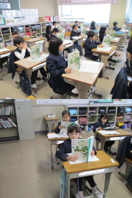 1月29日(月)1年生「たぬきの糸車」 公開日 2024/01/29 更新日 2024/01/29 1年生 国語では、「たぬきの糸車」のお話を、たぬきは、どんなことをしたのか、おかみさんがたぬきのしたことを見てどう思ったのか、みんなで話し合いながら読み進めています。 音読も上手になってきました。