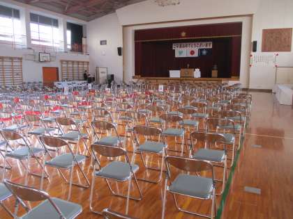 3月15日(金)『卒業式準備』〜2 公開日 2024/03/15 更新日 2024/03/15 今日のできごと 全て準備は整いました・・・が、何か寂しいなと感じました。そうです。今年度、卒業式は月曜日に行われるので、式花等は、日曜に用意されます。