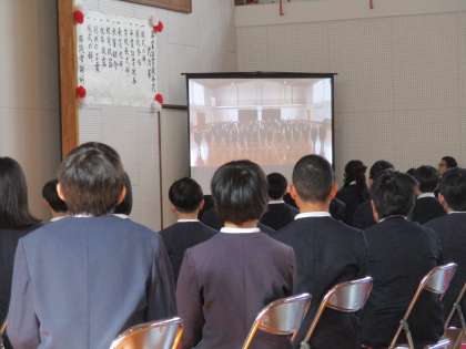5年生からの送る言葉(ビデオメッセージ)のあと、6年生から別れの言葉がありました。
