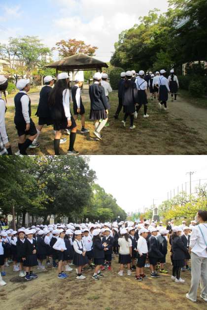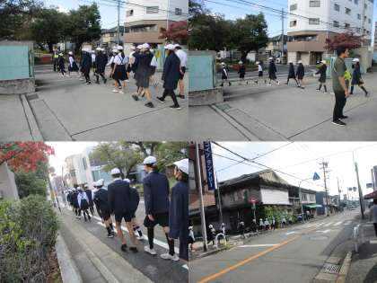 11月11日(月)『 避難訓練 』2 公開日 2024/11/11 更新日 2024/11/11 学校行事 本来避難場所は,三国丘小学校の方までですが,本日は土居川公園まで避難しました。どの子も先生の話もしっかりと聞き,移動の際も、静かに速やかに行動ができていました。