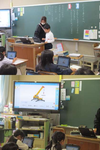 11月13日(水)1年生「じどう車くらべ」 公開日 2024/11/13 更新日 2024/11/13 1年生 国語は、説明文の学習です。パソコンを使って、説明のじゅんに気をつけながら、それぞれのじどう車のしごととつくりをまとめています。