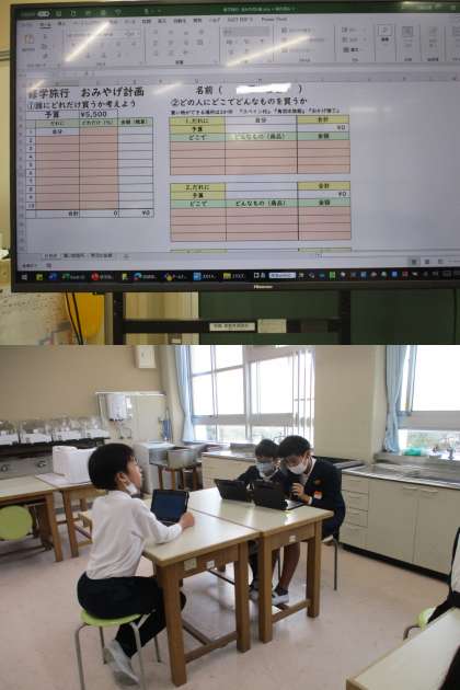 11月13日(水)6年生「買い物計画」 公開日 2024/11/13 更新日 2024/11/13 6年生 家庭科の授業の様子です。来週6年生は修学旅行に出かけます。限られたお小遣いの中で、お土産などの買い物を購入するために、どのように計画を立てればよいか、友達と考えながら進めていました。