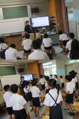理科の授業の様子です。暑い夏でいたが、学校の学習園にはたくさんのこん虫が見られ...