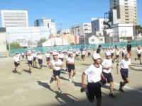 朝礼の後、体育大会の全体練習がありました。今日は、「校歌」「行進」「ラジオ体操」をしました。