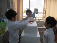 今日の朝の会は体育で、キャッチバレーボールをしました。上手にボールをキャッチしたり、パスをしたりすることができました。